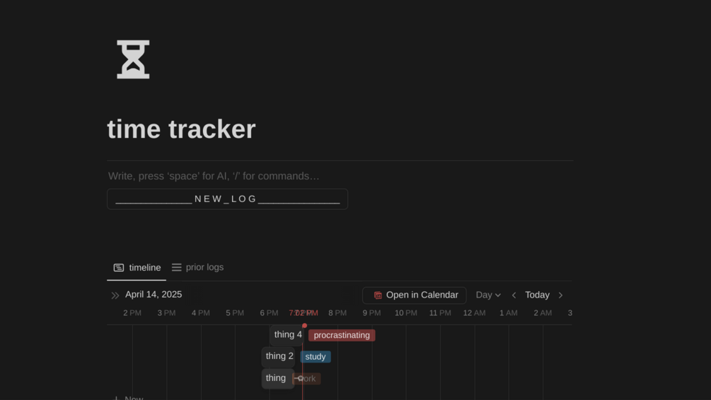 - over time you can see what you've been spending your time on by checking the doughnut chart* and looking at the prior log*